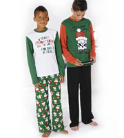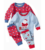 Two lovely pairs of festive long sleeved cotton pyjamas, patterned with fun stars and a jolly Father Christmas. They may look Christmassy on the outside, but inside they’re comfy enough to be worn the whole year through. |