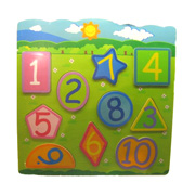 Large Wooden Number and Shape Puzzle£3.99, 18mths+This bold and colourful wooden puzzle allows toddlers to sort shapes and become more familiar with numbers. It comes boxed. |